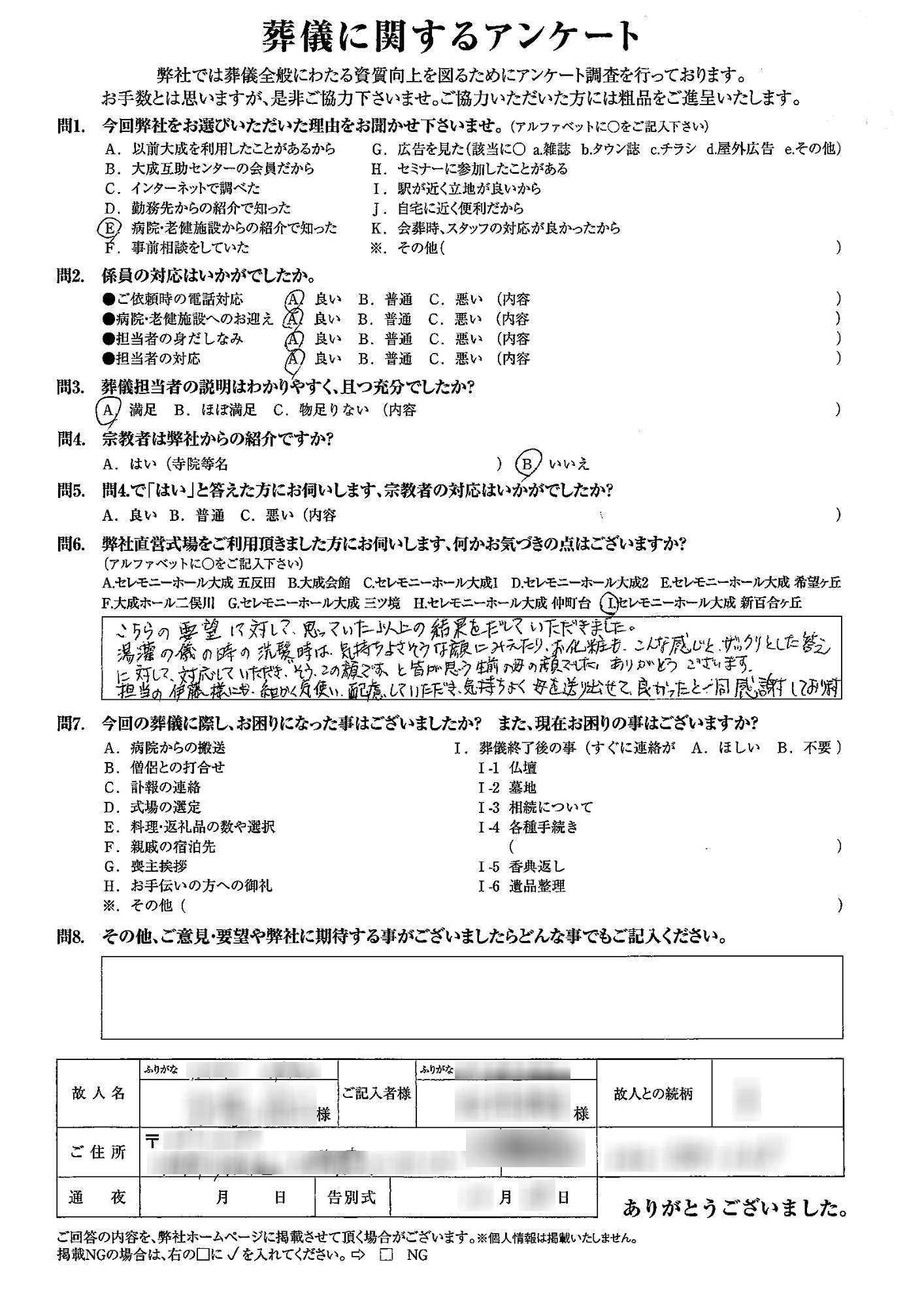 お疲れの癒えぬ中弊社 お客様アンケートにお答え頂き有難うございました。